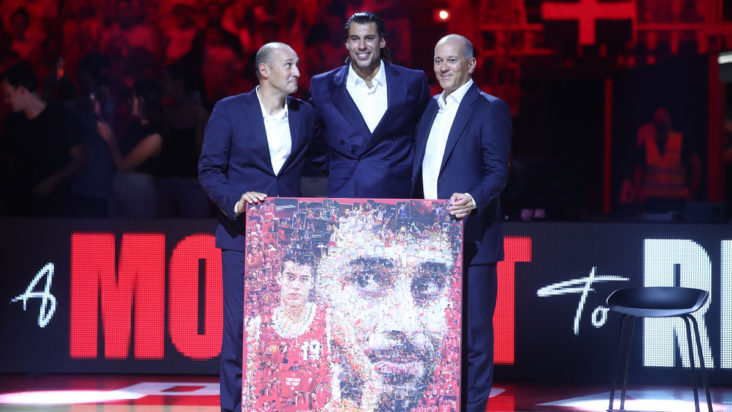 Την ίδια στιγμή, ο Γιώργος Αγγελόπουλος είπε πως «είμαστε εδώ για να τιμήσουμε έναν από τους μεγαλύτερους αθλητές στην ιστορία του Ολυμπιακού. Αυτό το καλάθι το 2012 άλλαξε την ιστορία του Ολυμπιακού. Ήταν ο,τι καλύτερο υπήρχε εκείνη τη στιγμή. Εγώ μπήκα μέσα, νόμιζα είχε τελειώσει το παιχνίδι. Δεν άκουγα, ήμουν σε άλλη κατάσταση. Από τότε άλλαξαν όλα. Άλλαξε η ιστορία του Ολυμπιακού.