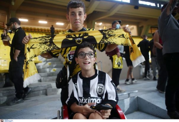 Ο μικρός φίλος του ΠΑΟΚ, Γιάννης Παπαστεφανάκης, που έχει κινητικά προβλήματα και βρέθηκε πέρυσι στον τελικό Κυπέλλου στον Βόλο, δίνει το παρών σήμερα στη Νέα Φιλαδέλφεια μαζί με τον αδερφό του Ευθύμη, υποστηρικτή της ΑΕΚ.