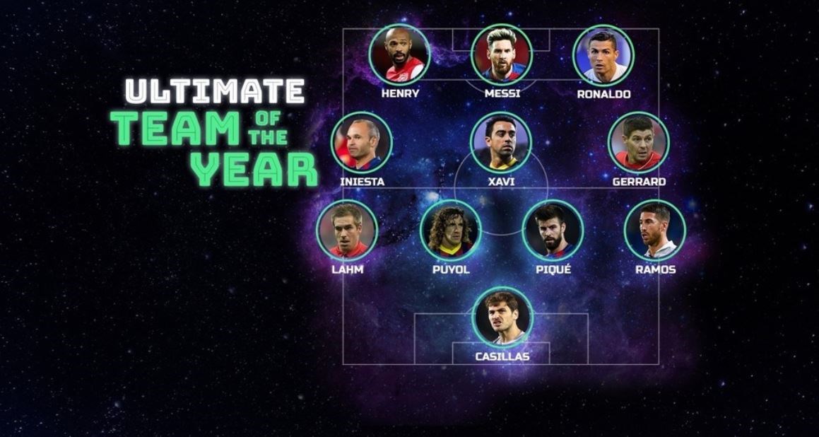 Η UEFA έκανε ψηφοφορία για την καλύτερη ενδεκάδα όλων των εποχών στο Champions League και δημοσίευσε τα αποτελέσματά της.Στην ενδεκάδα που ψηφίστηκε βρίσκονται τόσο ο Λιονέλ Μέσι, όσο και ο Κριστιάνο Ρονάλντο, ενώ την επιθετική τριπλέτα συμπληρώνει ο Τιερί Ανρί.Κάτω από τα δοκάρια είναι ο Κασίγιας, που προφανώς κέρδισε τη θέση στην εστία λόγω της σπουδαίας παρουσίας του για χρόνια στη Ρεάλ Μαδρίτης. Λαμ και Πουγιόλ στα άκρα έκαναν εξαιρετικές σεζόν και κατέκτησαν τίτλους με Μπάγερν και Μπαρτσελόνα, ενώ Πικέ και Ράμος αποτελούν και σήμερα δύο από τους κορυφαίους (αν όχι τους καλύτερους) αμυντικούς του θεσμού.Στη μεσαία γραμμή, δεσπόζουν Τσάβι και Ινιέστα που σάρωσαν τα πάντα με την Μπάρτσα, ενώ ο Τζέραρντ έγραψε τη δική του ιστορία με τη Λίβερπουλ στη διοργάνωση, πρωταγωνιστώντας στον κορυφαίο τελικό όλων των εποχών με την επική ανατροπή στην Κωνσταντινούπολη.Πρόκειται για ενδεκάδα η οποία βγήκε με βάση το ποιοι παίκτες είχαν συγκεντρώσει τους περισσότερους ψήφους από ψηφοφορίες που είχαν διεξαχθεί μέχρι σήμερα.Η καλύτερη ομάδα όλων των εποχών στο Champions League, σύμφωνα με το σάιτ της UEFA, έχει ως εξής:Κασίγιας, Λαμ, Πουγιόλ, Πικέ, Ράμος, Τσάβι, Ινιέστα, Τζέραρντ, Ανρί, Μέσι, Ρονάλντο.Δείτε τη φωτογραφία: