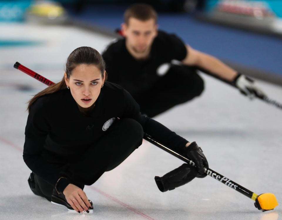 Η 25χρονη παγκόσμια πρωταθλήτρια αγωνίζεται τόσο στο ατομικό, όσο και στο κέρλινγκ ζευγαριών με παρτενέρ τον σύζυγό της. Χθες μάλιστα κατέκτησαν το πρώτο χρυσό μετάλλιο στο μικρό κέρλινγκ ζευγαριών, μαζί με τον σύζυγό της, Αλεξάντερ Κρουσελνίτσκι.
