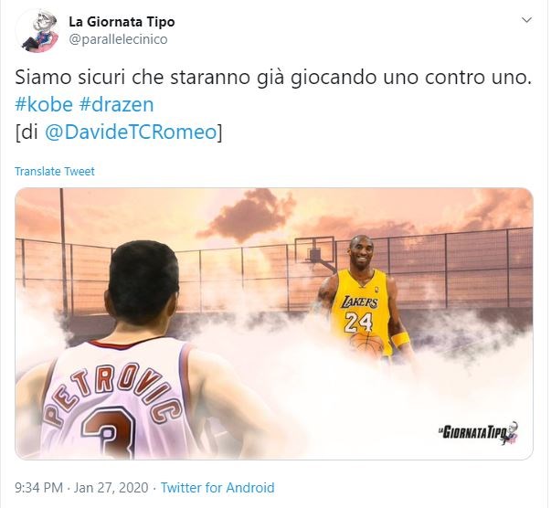 Ένα εκπληκτικό σκίτσο δημοσιεύτηκε από ιταλικό Μέσο στο twitter με τους ΚόμπΙ Μπράιαντ και Ντράζεν Πέτροβιτς στο ίδιο παρκέ.