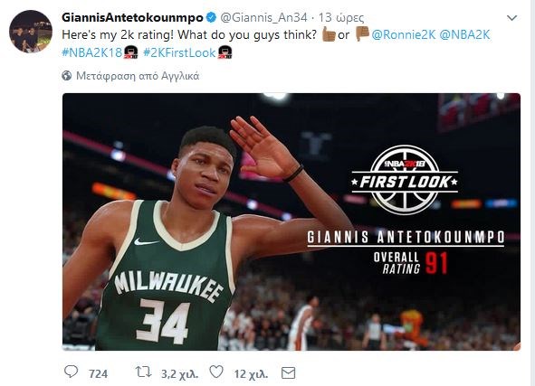 Η σειρά video game, ΝΒΑ2Κ, ανακοίνωσε μεταξύ άλλων την αξιολόγηση του Γιάννη Αντετοκούνμπο για το 2Κ18.