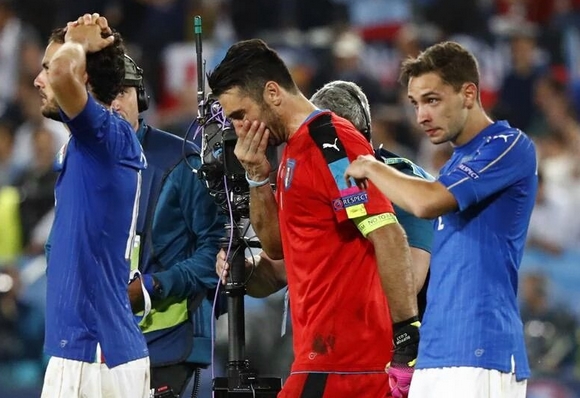 Οι Ιταλοί έχασαν με 6-5 από τους Γερμανούς. Έμειναν εκτός ημιτελικών και ο πολύπειρος πορτιέρο συνελήφθη από τον φακό να αποχωρεί από το γήπεδο με δάκρυα στα μάτια, με συμπαίκτες και αντιπάλους να πηγαίνουν κοντά του για να του δηλώσουν τη στήριξή τους.