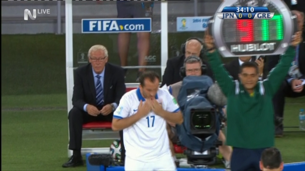 Αναγκαστική αλλαγή για την Ελλάδα. Ο Κώστας Μήτρογλου τραυματίστηκε (δέχθηκε χτύπημα στη μέση) και ο Φάνης Γκέκας στο 35’ πήρε τη θέση του.