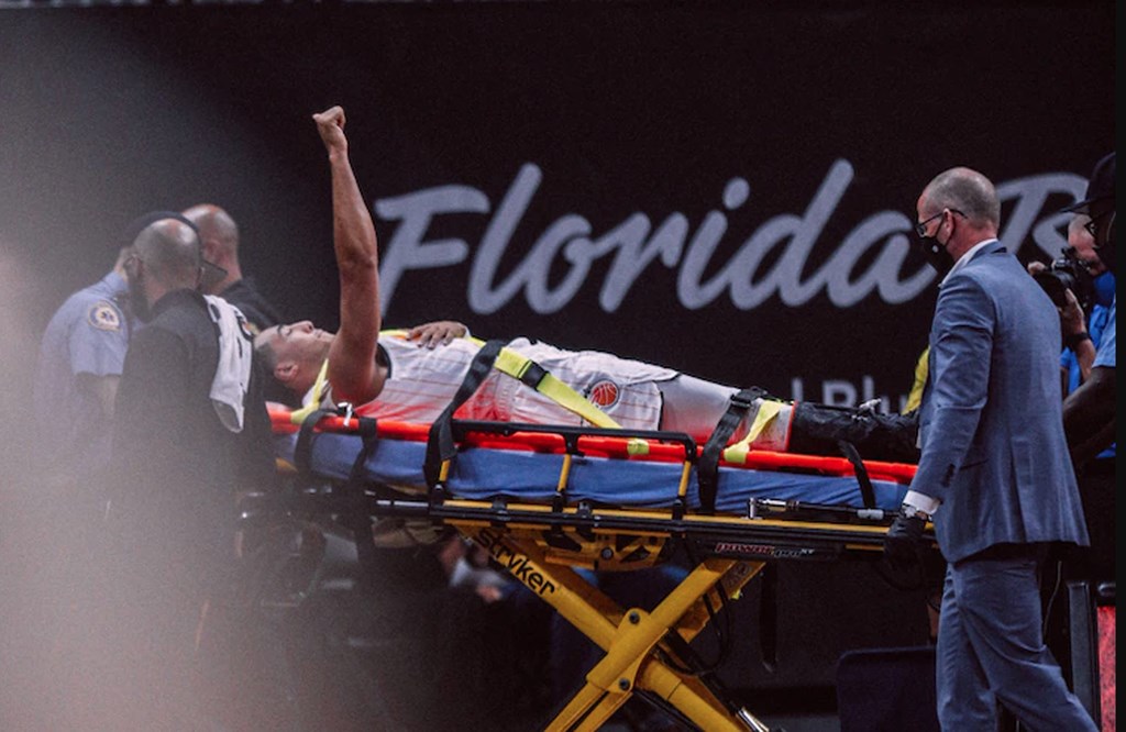 Ο 24χρονος μεταφέρθηκε με φορείο εκτός γηπέδου και σύντομα πρόκειται να περάσει την πόρτα του χειρουργείου.