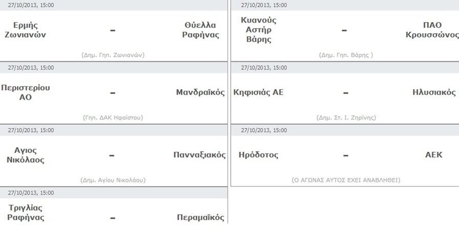 Ανακοίνωση βέβαια δεν βγήκε από την ΕΠΟ, αλλά τουλάχιστον μάθαμε την απόφαση από την ενημέρωση που έκαναν στην Ομοσπονδία στο πρόγραμμα του 6ου ομίλου, όπου γράφουν συγκεκριμένα κάτω από το ματς (Ο ΑΓΩΝΑΣ ΑΥΤΟΣ ΕΧΕΙ ΑΝΑΒΛΗΘΕΙ).