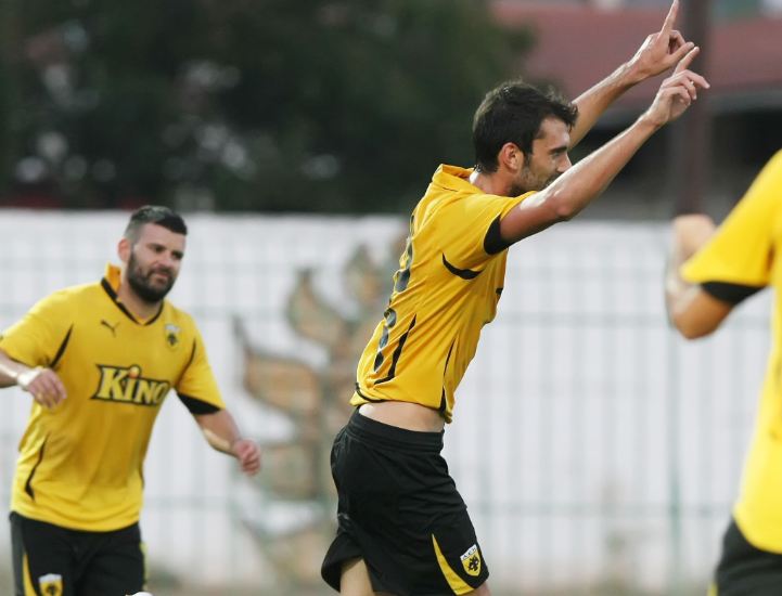 Η ΑΕΚ επιβλήθηκε 1-0 του Ηρακλή Ψαχνών σε φιλική αναμέτρηση , με τον Κουτρουμπή, στο ντεμπούτο του με την κιτρινόμαυρη φανέλα, να σημειώσει το πρώτο του τέρμα με τη νέα του ομάδα.Ο Βαγγέλης Βλάχος παρέταξε την ομάδα του με τους Αραμπατζή, Αρκούδα, Λαγό, Κουτρουμπή, Γιάγκο, Ρίκκα, Κοτσαρίδη, Γροντή, Κουρέλλα, Παυλή και Σιαλμά ενώ στη συνέχεια προχώρησε σταδιακά στην αντικατάσταση σχεδόν όλης της 11άδας με τους Κωνσταντόπουλο, Β.Βλάχο, Ματεντζίδη, Τσαμουρλίδη, Φέτση, Παπαδημητρίου, Σταματή, Καλογέρη, Φροξυλιά και Νικολόπουλο να παίρνουν χρόνο συμμετοχής.Το τέρμα που έκρινε τον αγώνα, σημείωσε ο νεοαποκτηθείς Κουτρουμπής στο 43ο λεπτό, ενώ η ΑΕΚ που είχε την υπεροχή στο παιχνίδι, έχασε κι άλλες ευκαιρίες για να σκοράρει.Ο τεχνικός της Ένωσης έβγαλε και από αυτό το ματς χρήσιμα συμπεράσματα. Ανασταλτικά οι κιτρινόμαυροι λειτούργησαν σχετικά καλά στο μεγαλύτερο διάστημα του αγώνα, δημιουργικά ωστόσο υστέρησαν και πάλι, μη μπορώντας να βρουν λύσεις επιθετικά, απέναντι σε μια ομάδα, σαφώς πιο ανέτοιμη αλλά και πολύ χαμηλότερης δυναμικότητας.Πηγή: pamesports.gr
