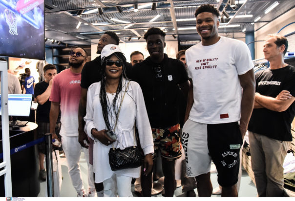 Μαζί με τον αδελφό του, Άλεξ και την μητέρα του, Βερόνικα ο Γιάννης Αντετοκούνμπο χαιρέτησε τον κόσμο που βρέθηκε εκεί και έδειξε να απολαμβάνει τις στιγμές. Στο event ήταν και ο Θανάσης Αντετοκούνμπο αλλά και ο μεγαλύτερος αδελφός της οικογενείας, Οφίλι.