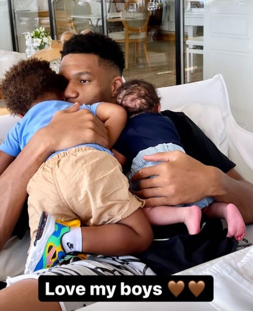 Ο Greek Freak ανέβασε μια τρυφερή φωτογραφία που έχει αγκαλιά τα δυο παιδιά του, γράφοντας: «Αγαπώ τα αγόρια μου». Οι φήμες για τη γέννηση του δεύτερου παιδιού του ζευγαριού είχαν φουντώσει όταν είχαν βγει βόλτα σε ένα εμπορικό κέντρο και η Μαράια είχε σε μάρσιπο το νεογέννητο.
