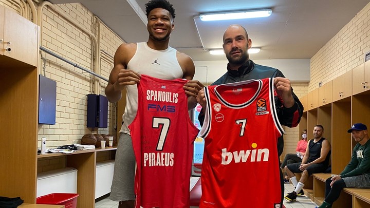 Μεγάλη μπασκετική συνάντηση έγινε στο ΣΕΦ. Ο Γιάννης Αντετοκούνμπο, που προπονείται αυτές τις μέρες στη χώρα μας, μίλησε με τον Βασίλη Σπανούλη, αντάλλαξαν φανέλες και… φιλοφρονήσεις. Ο σταρ των Μπακς χαρακτήρισε τον αρχηγό του Ολυμπιακού ως τον «Κόμπι της Ευρώπης». Ο 38χρονος γκαρντ των «ερυθρολεύκων», ζήτησε και αυτός με τη σειρά του φανέλα από τον «Greek Freak», με τον Γιάννη να υπόσχεται πως θα ανταποδώσει.