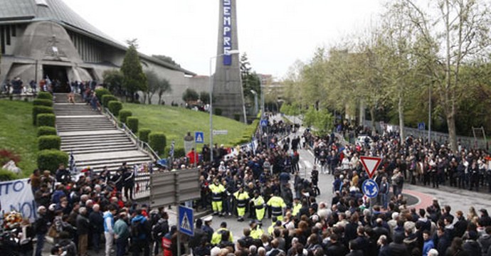 Περισσότεροι από 10.000 κόσμου βρέθηκαν την Πέμπτη στο Μοντερόσο του Μπέργκαμο για να πουν το τελευταίο “αντίο” στον Πιερμάριο Μοροζίνι, ο οποίος έχασε την ζωή του κατά τη διάρκεια του αγώνα της Λιβόνο με την Πεσκάρα το περασμένο Σάββατο.Συγγενείς, φίλοι, συμπαίκτες, αντίπαλοι αλλά και πλήθος απλού κόσμου ήταν εκεί για να αποχαιρετήσουν τον “Μόρο”, ο οποίος έφυγε από την ζωή σε ηλικία μόλις 25 χρονών.Το φέρετρο του Μοροζίνι ήταν σκεπασμένο με κασκόλ και εμφανίσεις των ομάδων στις οποίες είχε αγωνιστεί ενώ η τελετή μεταδόθηκε ζωντανά από μεγάλα τηλεοπτικά δίκτυα της Ιταλίας ενώ 3 γιγαντοοθόνες είχαν τοποθετηθεί έξω από την εκκλησία για τον κόσμο που βρισκόταν εκεί.
