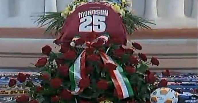 Περισσότεροι από 10.000 κόσμου βρέθηκαν την Πέμπτη στο Μοντερόσο του Μπέργκαμο για να πουν το τελευταίο “αντίο” στον Πιερμάριο Μοροζίνι, ο οποίος έχασε την ζωή του κατά τη διάρκεια του αγώνα της Λιβόνο με την Πεσκάρα το περασμένο Σάββατο.Συγγενείς, φίλοι, συμπαίκτες, αντίπαλοι αλλά και πλήθος απλού κόσμου ήταν εκεί για να αποχαιρετήσουν τον “Μόρο”, ο οποίος έφυγε από την ζωή σε ηλικία μόλις 25 χρονών.Το φέρετρο του Μοροζίνι ήταν σκεπασμένο με κασκόλ και εμφανίσεις των ομάδων στις οποίες είχε αγωνιστεί ενώ η τελετή μεταδόθηκε ζωντανά από μεγάλα τηλεοπτικά δίκτυα της Ιταλίας ενώ 3 γιγαντοοθόνες είχαν τοποθετηθεί έξω από την εκκλησία για τον κόσμο που βρισκόταν εκεί.