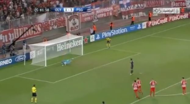 Η Παρί Σεν Ζερμέν κέρδισε πέναλτι στο 82 σε ανατροπή του Ιμπραϊμοβιτς από τον Σάμαρη. Το εκτέλεσε ο Σουηδός επιθετικός, αλλά ο Ρομπέρτο απέκρουσε και έτσι παρέμεινε το 1-3.