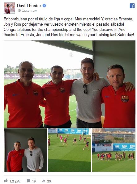 «Συγχαρητήρια για το πρωτάθλημα και το Κύπελλο. Το αξίζεις. Ευχαριστώ τον Ερνέστο, τον Γιον και τον Ρος που μου επέτρεψαν να παρακολουθήσω την προπόνηση το περασμένο Σάββατο», έγραψε ο Νταβίντ Φουστέρ.