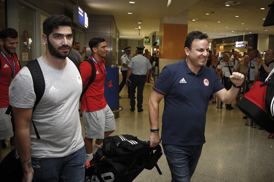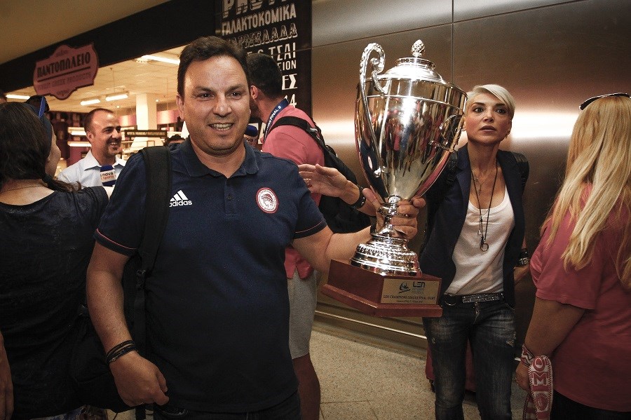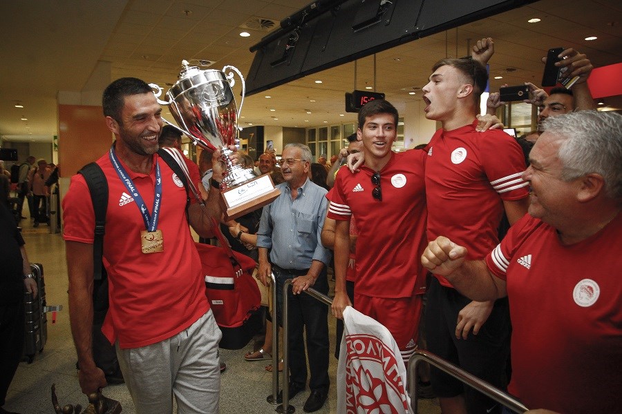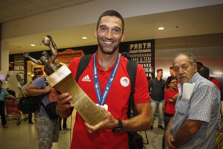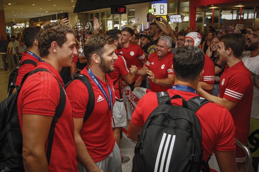 Οι πρωταθλητές Ευρώπης πολίστες του Ολυμπιακού επέστρεψαν από τη Γένοβα, μαζί με το τρόπαιο του Len Champions League και στο αεροδρόμιο Ελευθέριος Βενιζέλος επικράτησε πανδαιμόνιο.
