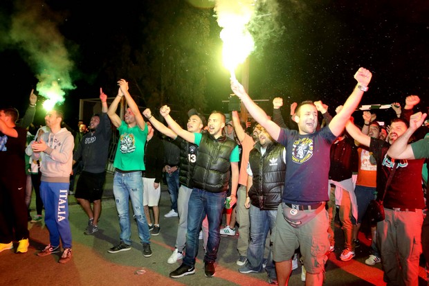 Περίπου 1.000 οπαδοί του «τριφυλλιού» συγκεντρώθηκαν στο ΟΑΚΑ αμέσως μετά το τέλος του αγώνα και περίμεναν να επιστρέψει η αποστολή από το ΣΕΦ.