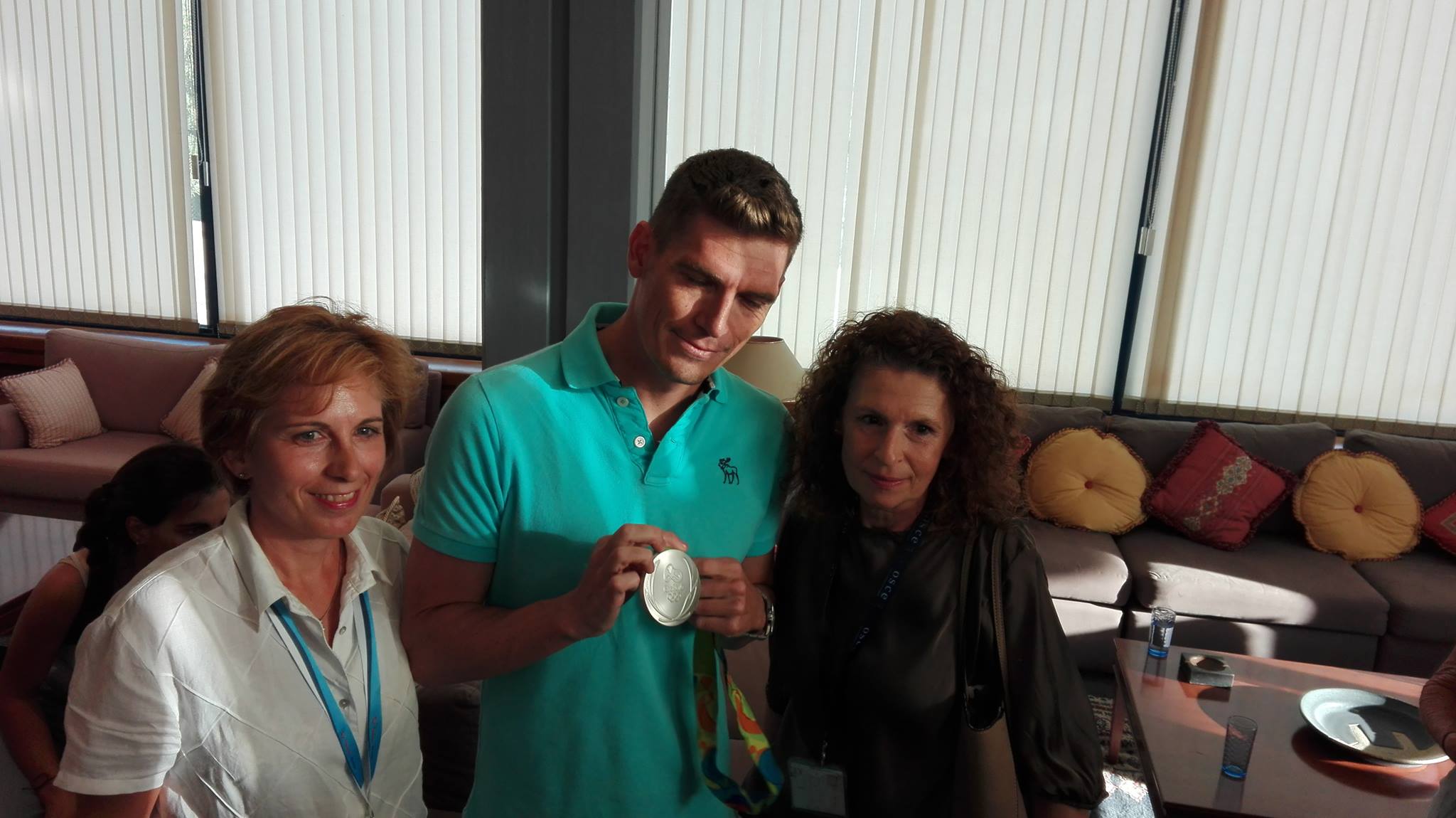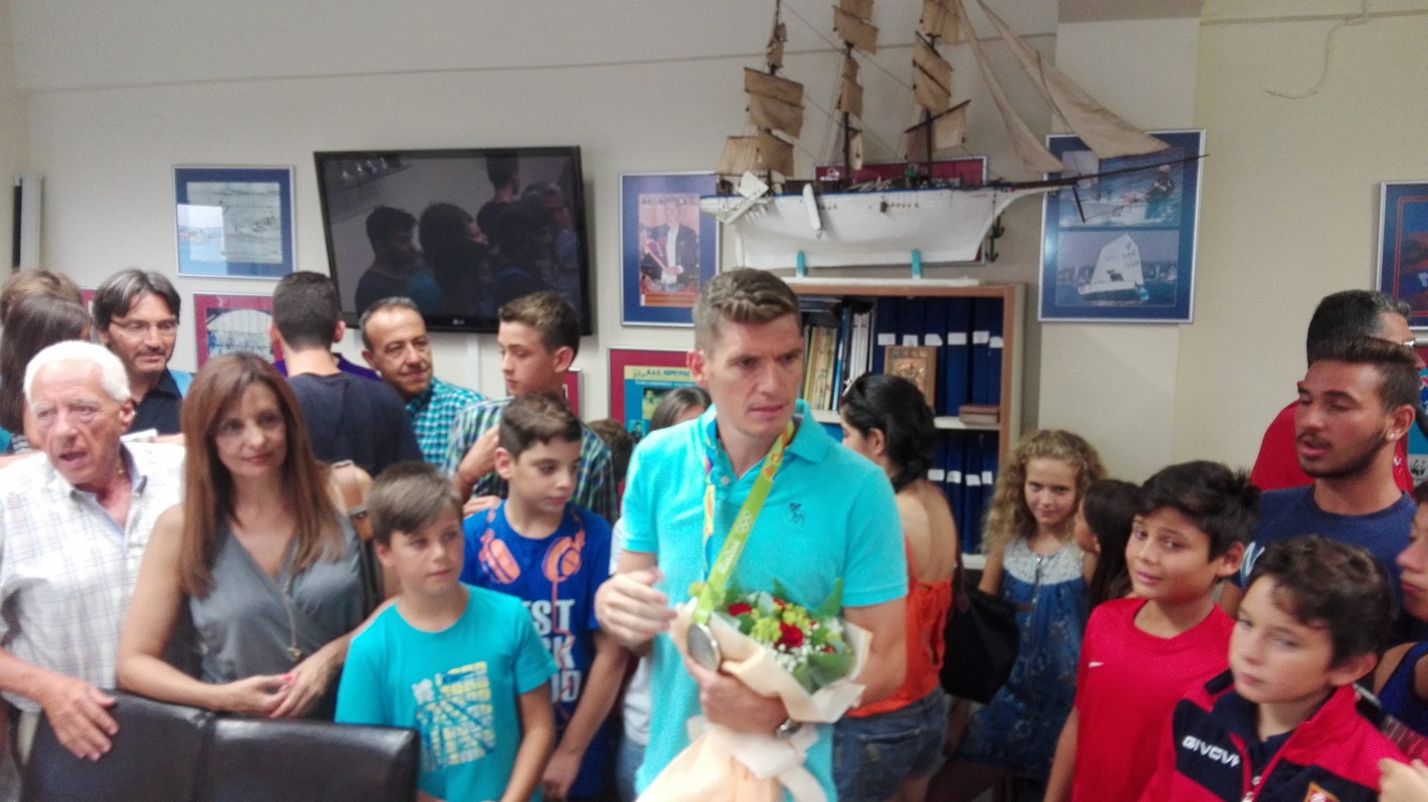 Ακολούθως ο ασημένιος Ολυμπιονίκης του Ρίο, επισκέφτηκε το χώρο που άρχισε να κολυμπάει, τα γραφεία του Ναυτικού Αθλητικού Ομίλου Κέρκυρας, όπου είχε και εκεί μαζευτεί πλήθος κόσμου, ώστε να δει τον Έλληνα ολυμπιονίκη και να τον συγχαρεί για την τεράστια αυτή διάκριση.