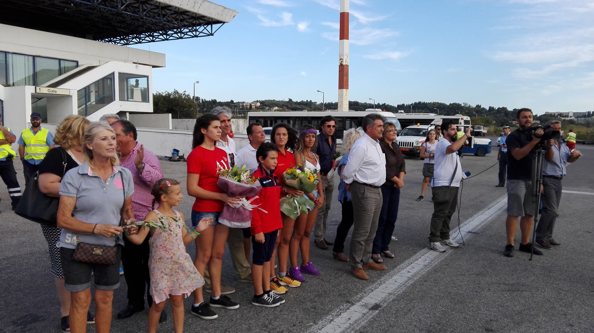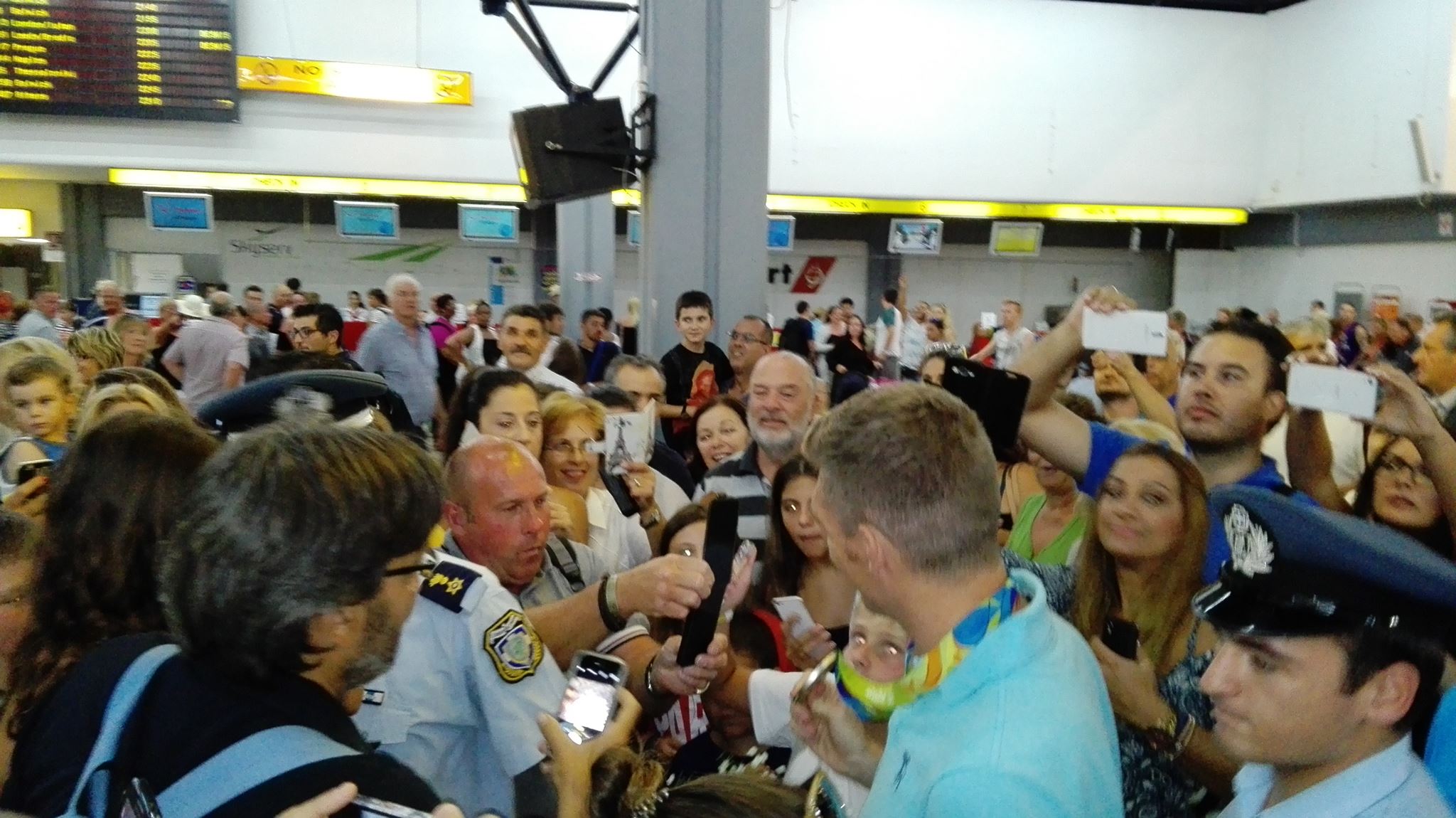 Με χειροκροτήματα, επευφημίες και επιφωνήματα χαράς έγινε δεκτός από συγγενείς και φίλους ο αργυρός Ολυμπιονίκης Σπύρος Γιαννιώτης το βράδυ της Παρασκευής στο αεροδρόμιο της Κέρκυρας.