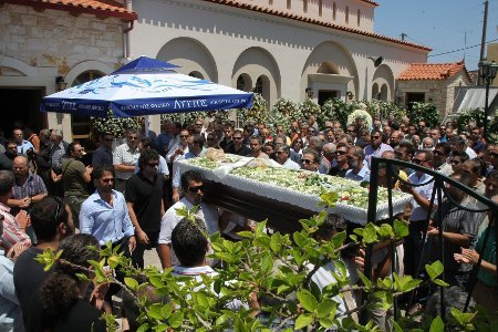 Συγγενείς, φίλοι, φίλαθλοι, φορείς, αρχές αλλά και απλοί πολίτες είπαν το τελευταίο αντίο στον Απόστολο Παπουτσάκη που έφυγε χθες από τη ζωή σε ηλικία 60 ετών. Η νεκρώσιμος ακολουθία πραγματοποιήθηκε στον Ι.Ν. Αγίου Δημητρίου Άνω Χερσονήσου. Στο τελευταίο αντίο, στον Κρητικό παράγοντα το παρόν έδωσε πλήθος κόσμου, καθώς ο εκλιπόντας ήταν ιδιαίτερα αγαπητός στην τοπική κοινωνία και κάθε του δραστηριότητα, είτε στις επιχειρήσεις του είτε στον αθλητισμό συνοδευόταν από ήθος. Ο Απόστολος Παπουτσάκης άφησε την τελευταία του πνοή νωρίς χθες το πρωί στο ΠΑΓΝΗ. Ο Κρητικός παράγοντας νοσηλευόταν με ισχαιμικό επεισόδιο στο νοσοκομείο ωστόσο, το βράδυ του Σαββάτου υπέστη ανακοπή και μεταφέρθηκε εσπευσμένα στην Μονάδα Εντατικής Θεραπείας.