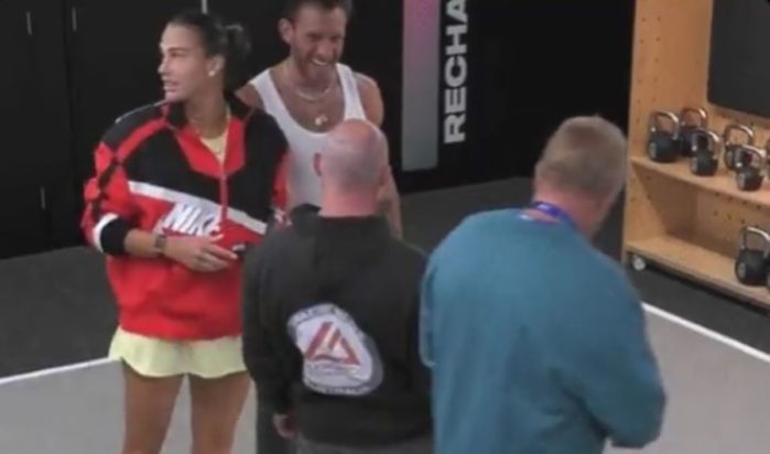 Έντονες αντιδράσεις έχει προκαλέσει το βίντεο που δείχνει την τενίστρια Αρίνα Σαμπαλένκα και μέλη της ομάδας της να προσποιούνται ότι ουρούν πάνω στο βραβείο για τη 2η θέση στο Australian Open.