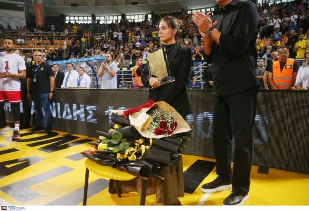 Πριν από την έναρξη του αγώνα, η κόρη του «Ξανθού» Θεοδώρα-Ελένη δέχθηκε τιμητική πλακέτα από τον πρόεδρο της ΚΑΕ Άρης, Χάρη Παπαγεωργίου αλλά και τον μάνατζερ του Ολυμπιακού, Χρήστο Μπαφέ, σε μια εκδήλωση τιμής από τον ΕΣΑΚΕ.