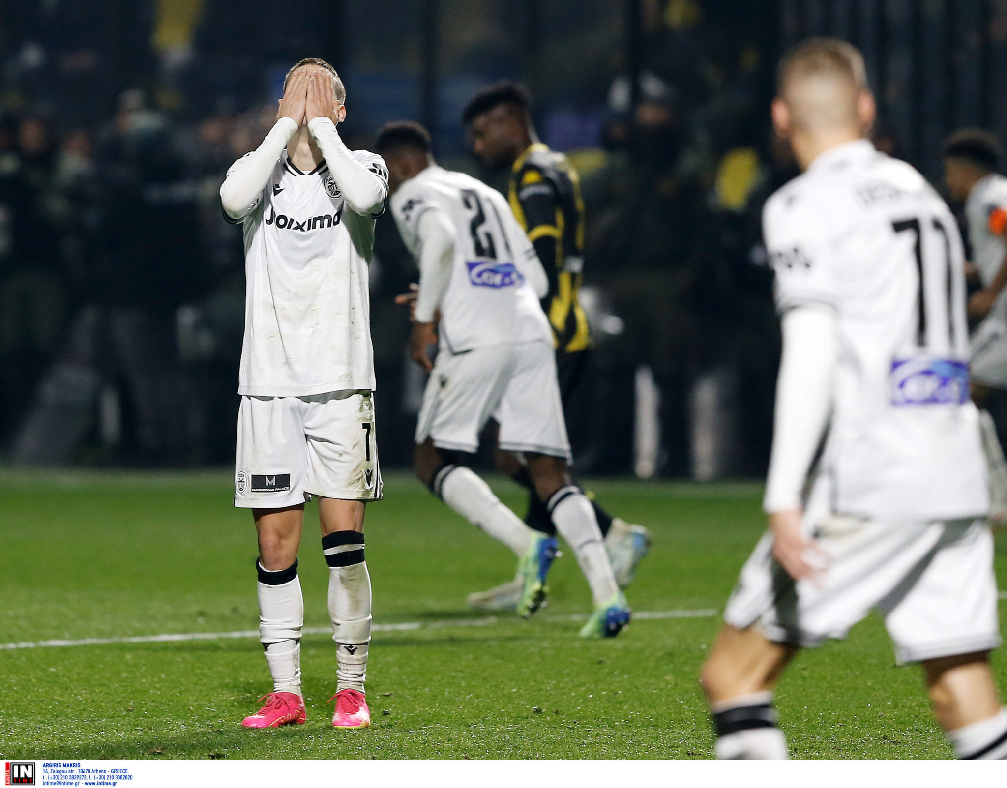 Μετά το πρώτο τέταρτο, οι «ασπρόμαυροι» άρχισαν να υπερτερούν στην κατοχή της μπάλας. Στο 22’, μάλιστα, δημιούργησαν κι έχασαν την πρώτη καλή στιγμή, με την κεφαλιά του αφύλακτου Μαντί Καμαρά, από το σημείο του πέναλτι, να μην έχει δύναμη για να απειλήσει ιδιαίτερα τον Χουλιάν Κουέστα.