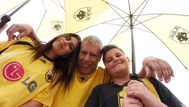Ούτε η βροχή δεν φαίνεται ικανή να μετριάσει τη… δίψα των φίλων της ΑΕΚ που μετρούν αντίστροφα για να υποδεχτούν στη Νέα Φιλαδέλφεια την πρωταθλήτρια.
