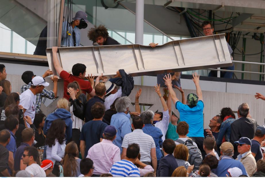Από θαύμα δεν υπήρξαν σοβαρά τραυματίες στο Roland Garros όταν κατά τη διάρκεια του γαλλικού Grand Slam, κατέρρευσε ένα τμήμα από το μεταλλικό σκέπαστρο κι έπεσε πάνω στους φιλάθλους.