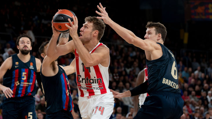 Ο Γιαννούλης Λαρεντζάκης πέτυχε τέσσερα τρίποντα στα τελευταία λεπτά της πρεμιέρας του Ολυμπιακού στη Euroleague με την Μπαρτσελόνα και έφυγε θριαμβευτής, με 80-70, από το «Παλάου Μπλαουγκράνα». Μια γλυκιά εκδίκηση για την ήττα του από τους Καταλανούς, στο τελευταίο παιχνίδι του για την περυσινή σεζόν, στον «μικρό» τελικό του φάιναλ φορ του Βελιγραδίου.