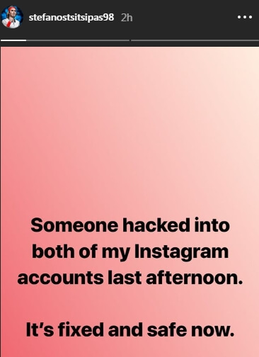 Σύμφωνα με όσα έγιναν γνωστά, άγνωστοι χάκαραν το λογαριασμό του Στέφανου Τσιτσιπά στο Instagram το απόγευμα της Δευτέρας (18.02.2019).