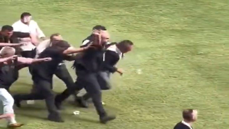 Ο διαιτητής διέκοψε προσωρινά τον αγώνα, ενώ ο Κοτς επέστρεψε στα επίσημα με τη βοήθεια της προσωπικής του ασφάλειας και της αστυνομίας, η οποία σχημάτισε προστατευτικό κλοιό με τις ασπίδες της.