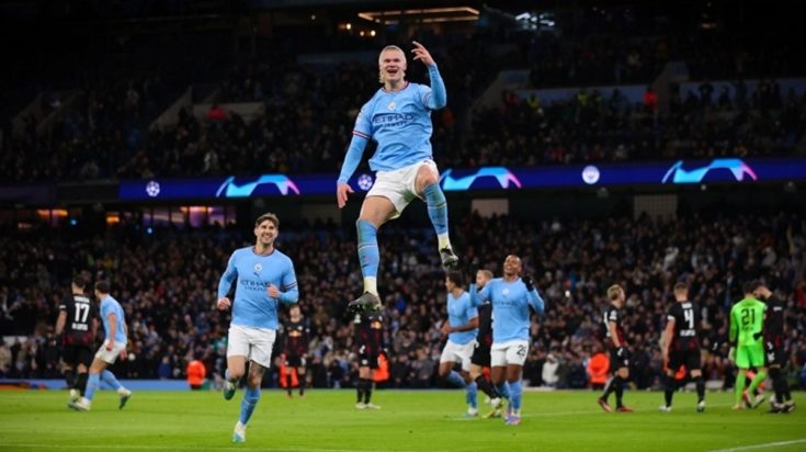 Το «φαινόμενο» της Μάντσεστερ Σίτι, ο Έρλινγκ Χάαλαντ, «σπάει» τα ρεκόρ στο πέρασμά του. Απόψε στο Έτιχαντ, στη ρεβάνς του 1-1 επί γερμανικού εδάφους, έκανε απίθανα πράγματα στην εμφατική πρόκριση της ομάδας του στους προημιτελικούς του Champions League με το 7-0 επί της Λειψίας, σκοράροντας 5 φορές.