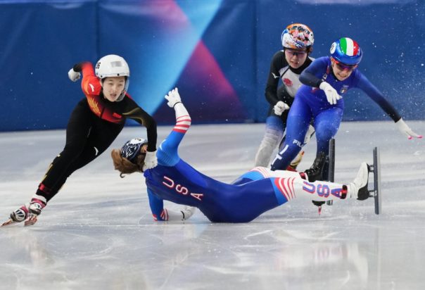 Η Κορίν Στόνταρντ στον αγώνα προκριματικών 500 μέτρων γυναικών, γλίστρησε συμπαρασύροντας τις Sighel (Ιταλία) και Kanai (Ιαπωνία) και κατάφερε να χάσει την πρώτη θέση.