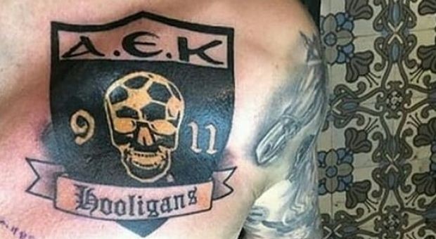 Ο πρώην στόπερ της ΑΕΚ, λοιπόν, για να καλύψει το Daniela έκανε ένα τατουάζ με το σήμα της Ένωσης.