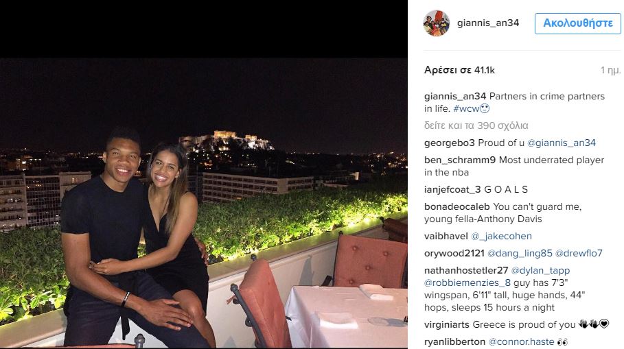 Ο νέος σταρ του NBA ανέβασε στην προσωπική του σελίδα στο Instagram φωτογραφία με την καλή του και φόντο την Ακρόπολη.