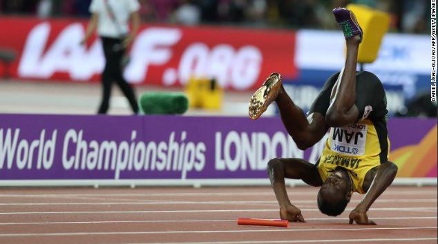 Στην τελευταία κούρσα της καριέρας του, ο τεράστιος Γιουσέιν Μπολτ τραυματίστηκε στα τελευταία μέτρα των 4Χ100 και έπεσε κάτω, με αποτέλεσμα η Τζαμάικα να μην τερματίσει καν και η Μεγάλη Βρετανία να κατακτήσει το χρυσό μετάλλιο, νικώντας και τις ΗΠΑ.