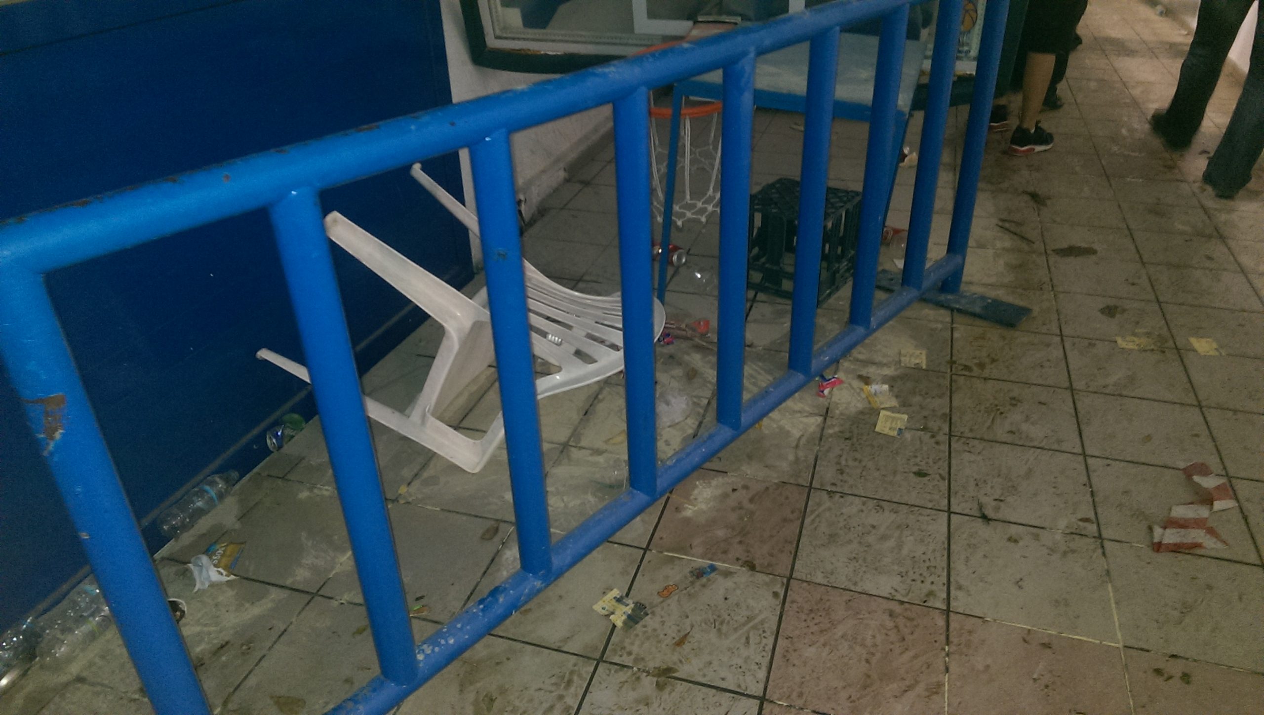 Σύμφωνα με ανακοίνωση της ΕΛ.ΑΣ., δυο μεγάλες ομάδες φιλάθλων επιχείρησαν να εισέλθουν βίαια, από διαφορετικά σημεία, στο ήδη κατάμεστο Γυμναστήριο και επιτέθηκαν κατά των αστυνομικών δυνάμεων, ρίπτοντας εναντίον τους διάφορα αντικείμενα.