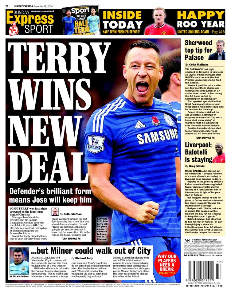 Στην Τσέλσι θα κλείσει την καριέρα του ο Τζον Τέρι, καθώς ο 34χρονος αμυντικός αναμένεται να υπογράψει νέο συμβόλαιο με τους «μπλε» του Λονδίνου, σύμφωνα με δημοσιεύματα του βρετανικού Τύπου. Το νέο συμβόλαιο θα ανταμείψει τον εμβληματικό αρχηγό με 175 χιλιάδες λίρες την εβδομάδα.
