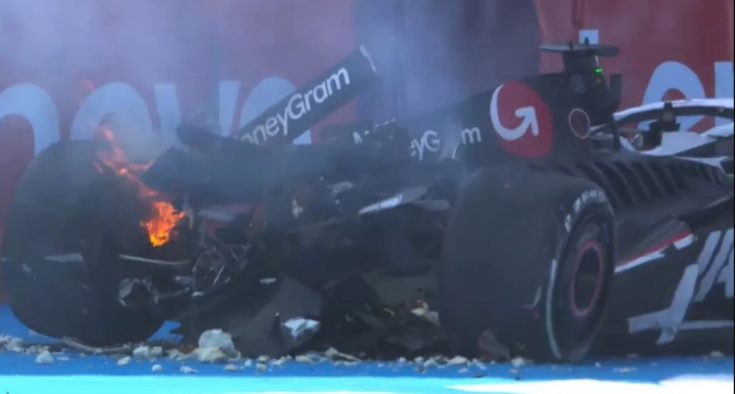 Συγκεκριμένα, ο οδηγός της Haas έχασε τον έλεγχο από το μονοθέσιό του στη στροφή 8-9 του Autodromo Hermanos Rodriguez και χτύπησε στις μπαριέρες περίπου στα μισά του αγώνα και το αυτοκίνητο τυλίχθηκε στις φλόγες.