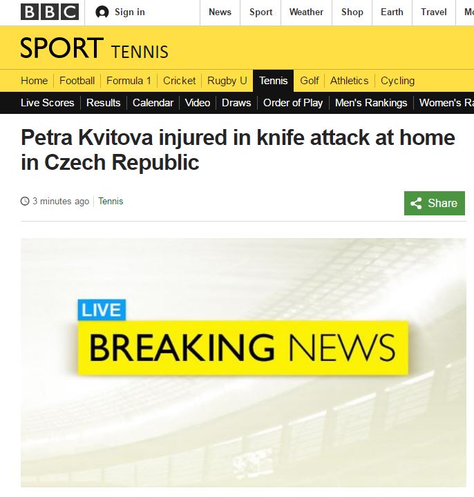 Η Τσέχα τενίστρια, Πέτρα Κβίτοβα, δέχθηκε επίθεση με μαχαίρι στο σπίτι της.