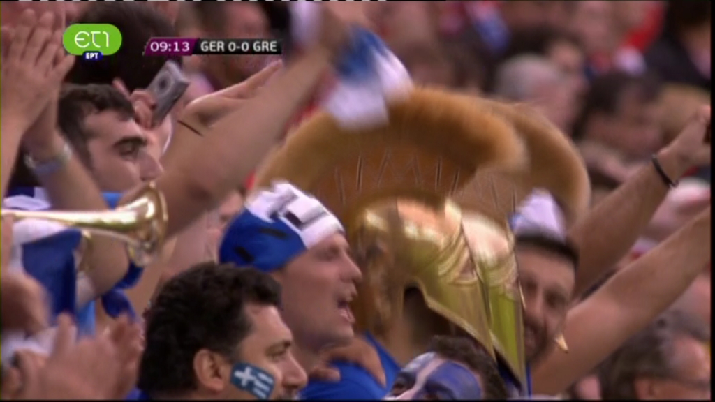 Παρά το γεγονός ότι η εθνική μας βρίσκεται πίσω στο σκορ και πως οι Γερμανοί που βρίσκονται στο γήπεδο είναι πολύ περισσότεροι, οι Έλληνες έχουν κερδίσει την μάχη της εξέδρας. Δεν σταματούν από το πρώτο λεπτό να τραγουδούν και να εμψυχώνουν τους διεθνείς μας.