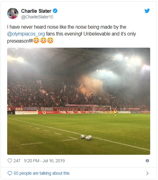 Ως τους πιο θορυβώδεις χαρακτήρισε τους οπαδούς του Ολυμπιακού, ο Τσάρλι Σλάτερ.
