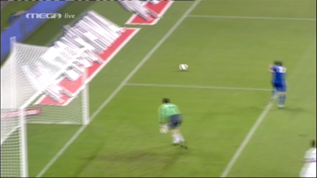 Μεγάλη ευκαιρία για την εθνική μας για να ανοίξει το σκορ με τον Γκέκα να στέλνει τη μπάλα στο δοκάρι στο 4 μετά από ασίστ του Σαμαρά.