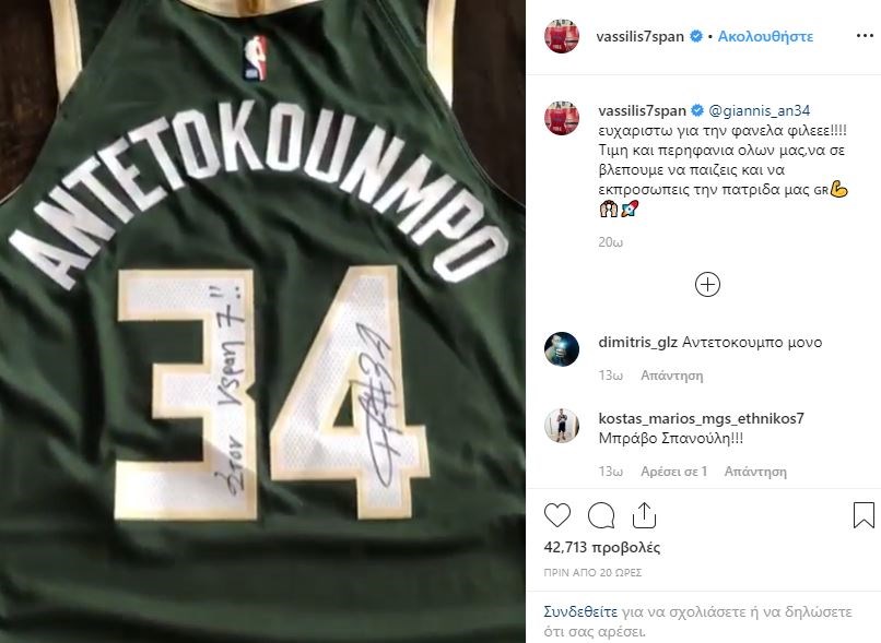 Ο Γιάννης Αντετοκούνμπο έστειλε το δικό του «ευχαριστώ» στον Βασίλη Σπανούλη για τα αποθεωτικά λόγια του, με αφορμή το δώρο που του έκανε ο σταρ των Μπακς.