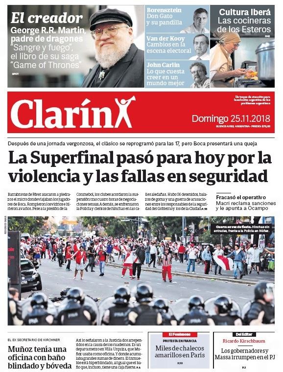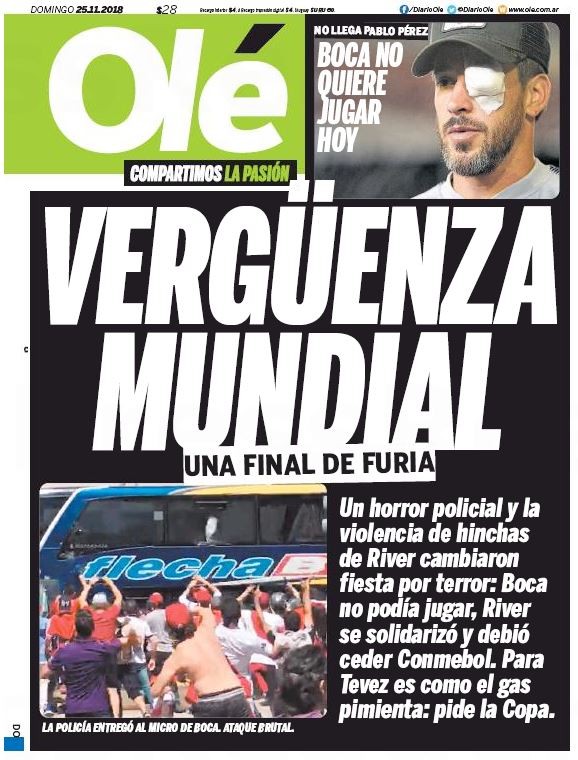 Όμως, οι οπαδοί της Ρίβερ Πλέιτ έκαναν δολοφονική επίθεση στο πούλμαν που μετέφερε την αποστολή της Μπόκα, με αποτέλεσμα ο αγώνας να οριστεί για σήμερα, χωρίς κανείς να λέει με σιγουριά αν θα διεξαχθεί και απόψε (22:00).