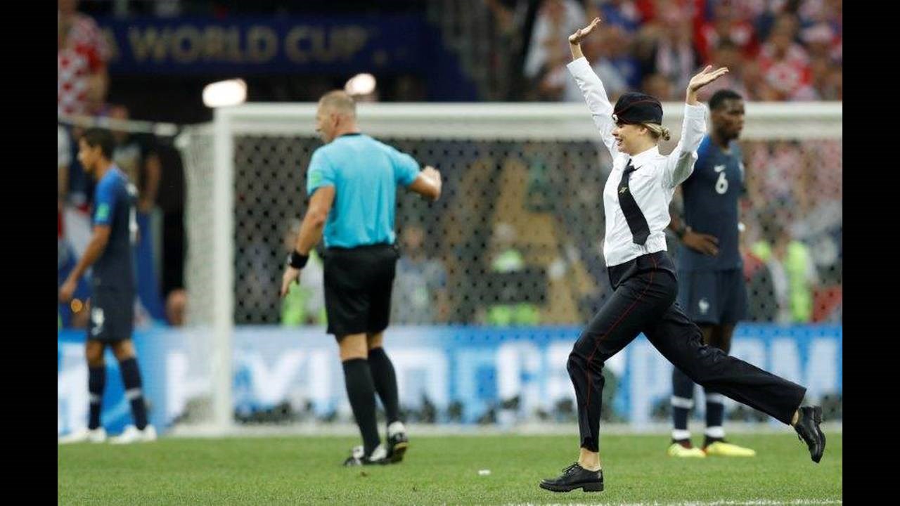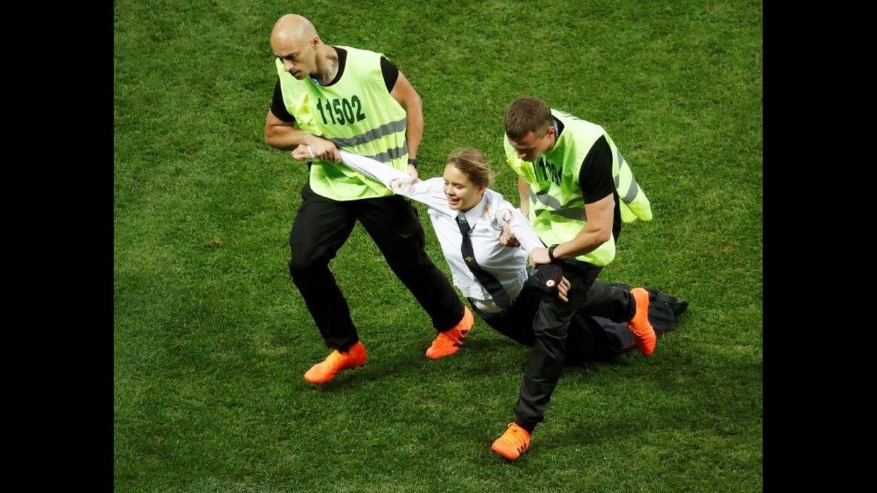 Παρά τα δρακόντεια μέτρα ασφαλείας που υπήρχαν στο “Luzhniki Stadium” για τον τελικό του Παγκοσμίου Κυπέλλου, τέσσερα άτομα κατάφεραν να εισβάλουν στον αγωνιστικό χώρο και να διακόψουν προσωρινά τη φυσική ροή του.