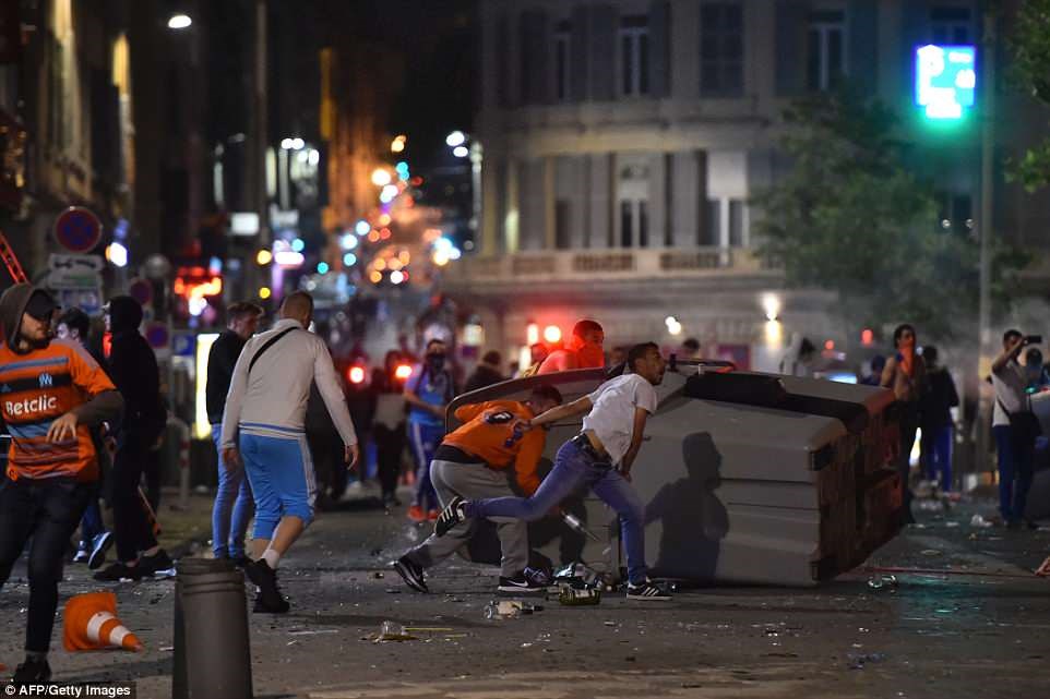 Πολλοί από τους φίλους της ομάδας που δεν κατάφεραν να πάνε στη Λιόν για τον τελικό βγήκαν στους δρόμους της Μασσαλίας βάζοντας φωτιές σε κάδους και προκαλώντας υλικές ζημιές σε αυτοκίνητα και καταστήματα.