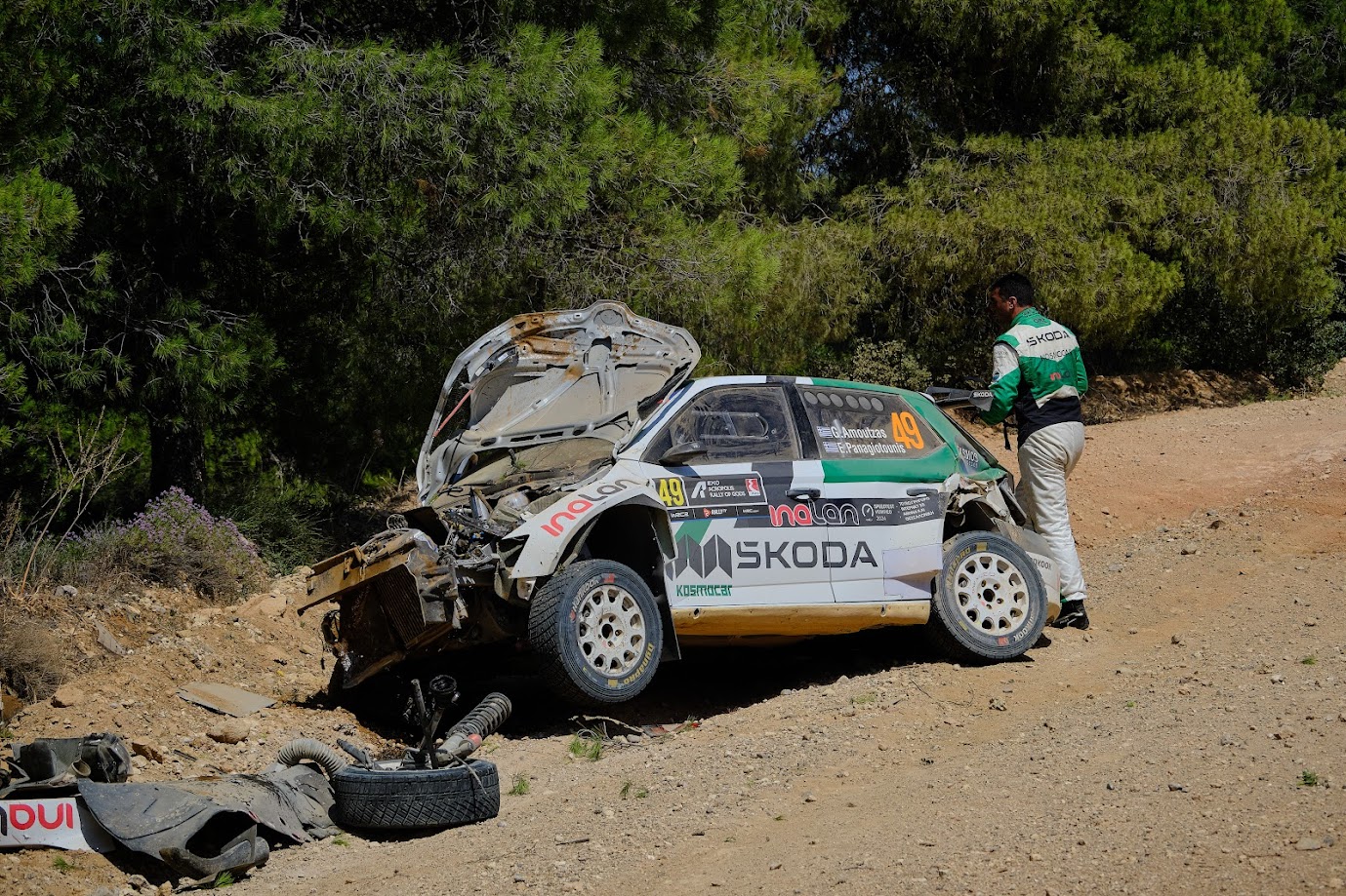 Ο πρωταθλητής Ράλλυ Ελλάδας είχε ατύχημα στο 13ο χιλιόμετρο της διαδρομής, με το Skoda Fabia Rally2 EVO να μένει εκτός δρόμου κατεστραμμένο. Το πλήρωμα του οχήματος ευτυχώς είναι καλά στην υγεία του και όπως ήταν αναμενόμενο, εγκατέλειψε τον αγώνα.