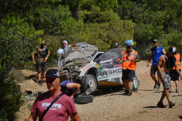 Ο πρωταθλητής Ράλλυ Ελλάδας είχε ατύχημα στο 13ο χιλιόμετρο της διαδρομής, με το Skoda Fabia Rally2 EVO να μένει εκτός δρόμου κατεστραμμένο. Το πλήρωμα του οχήματος ευτυχώς είναι καλά στην υγεία του και όπως ήταν αναμενόμενο, εγκατέλειψε τον αγώνα.