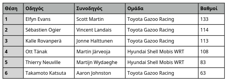 Βαθμολογία μέχρι το ΕΚΟ Ράλλυ Ακρόπολις